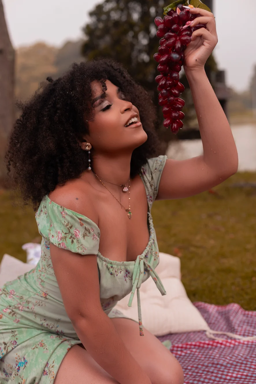 Brunette, wild afro and a look that disarms you.